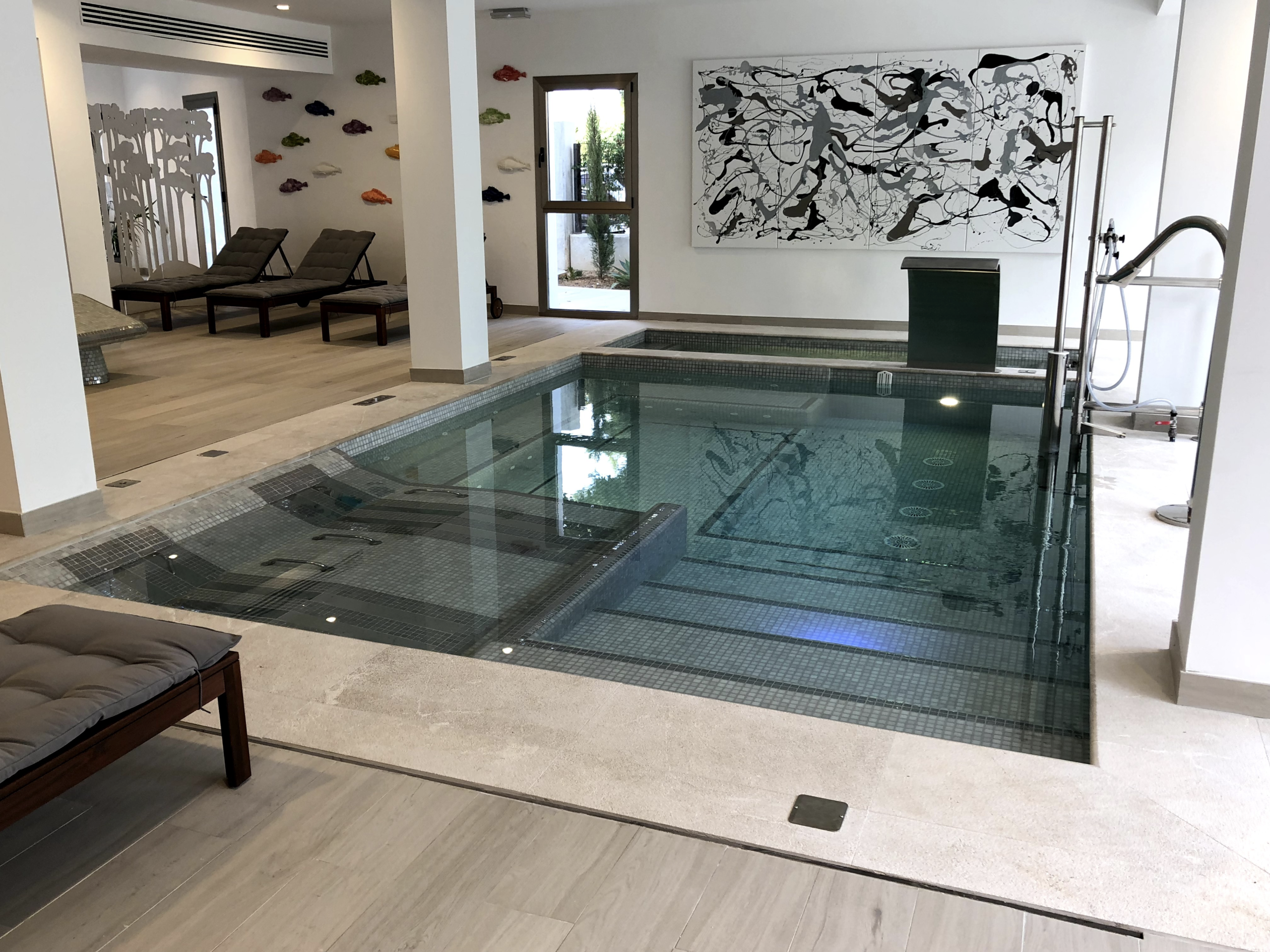 La propiedad contaba con una piscina de hormigón construida en los años 90, ubicada en una parcela con un desnivel del 30%. Con el paso del tiempo, los asentamientos del terreno provocaron microfisuras en el vaso, resultando en fugas de agua constantes y un deterioro visible del revestimiento cerámico. Además, el local técnico era inaccesible y los equipos de filtración estaban obsoletos.